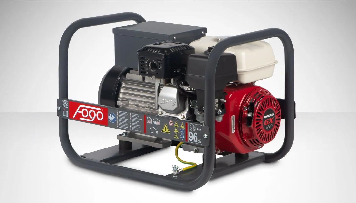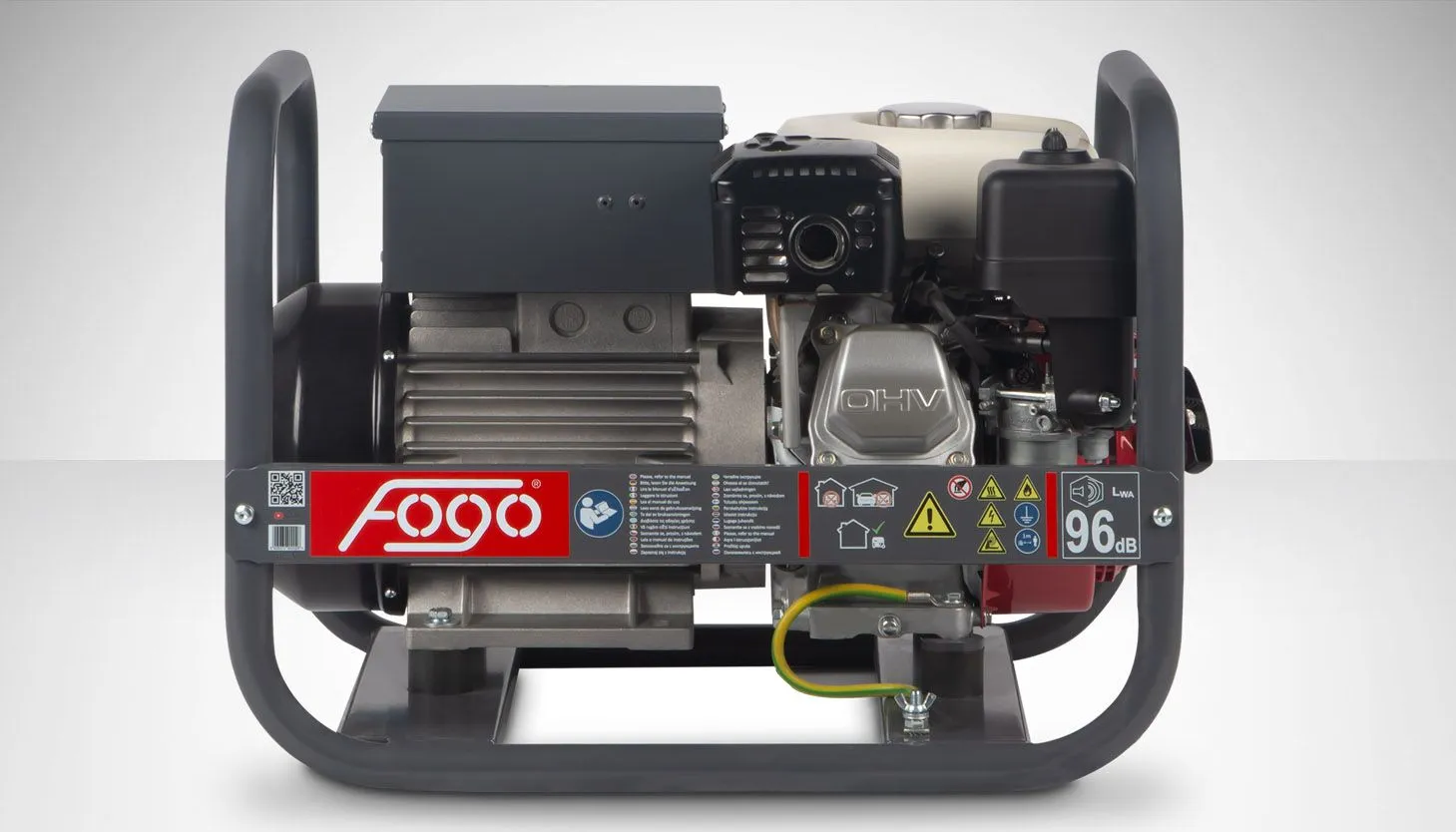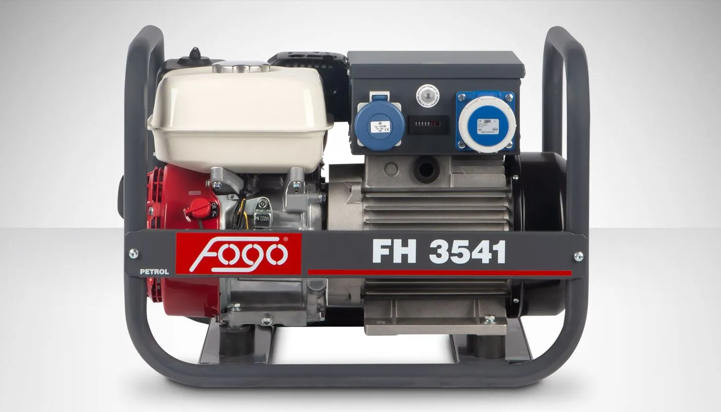 Agregat prądotwórczy 1-fazowy FOGO FH3541 (IP54) — moc 3,0/2,7 kW, silnik HONDA GX200, zbiornik 3,1 l, masa 53 kg. Stopień ochrony IP54 — odporność na zachlapanie i pył.