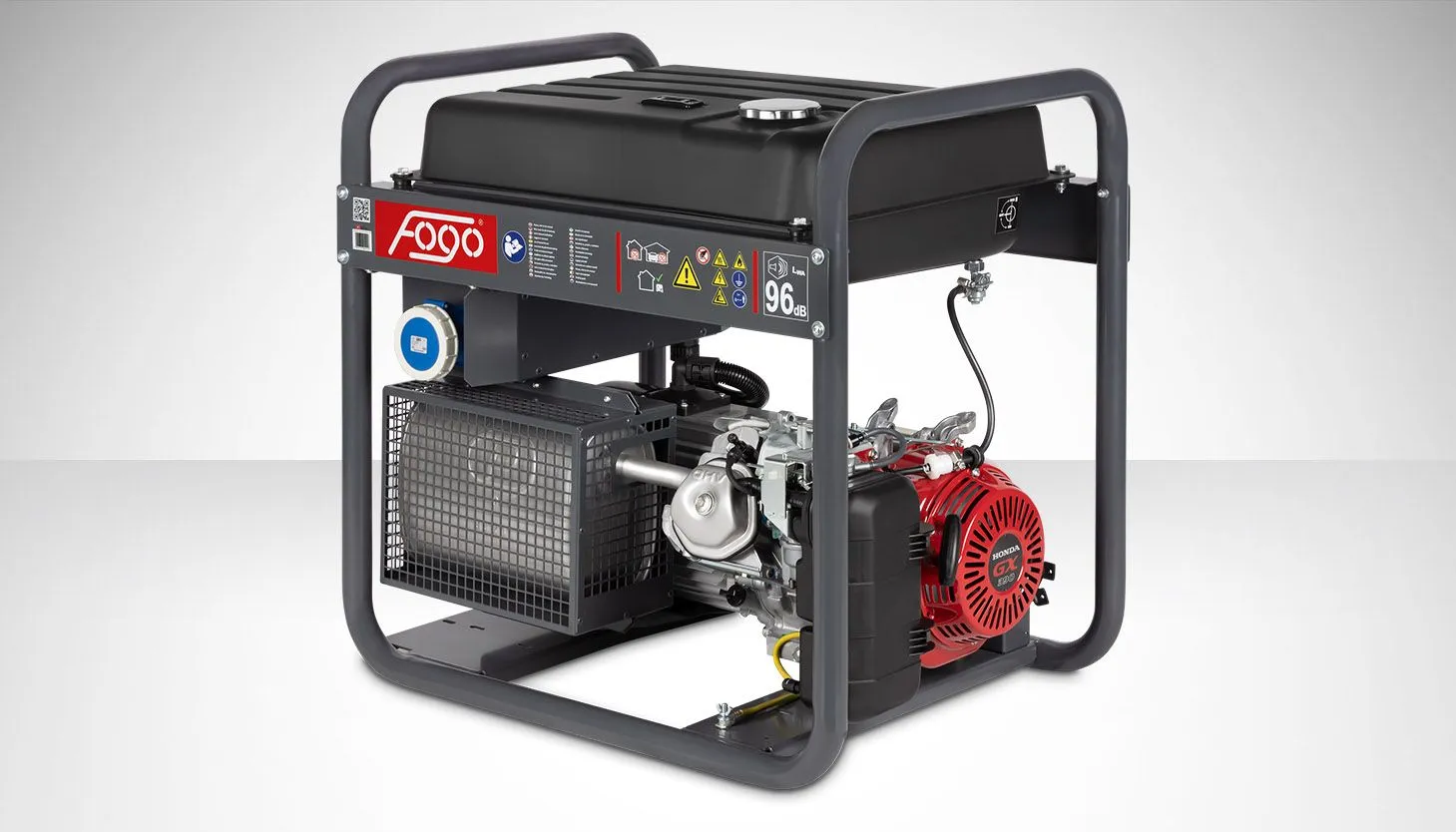 Agregat prądotwórczy 3-fazowy FOGO FH9540TRE (IP54) — moc 8,1/7,3 kVA, silnik HONDA GX390, zbiornik 45 l, masa 122 kg. Trójfazowy 400 V do urządzeń przemysłowych.