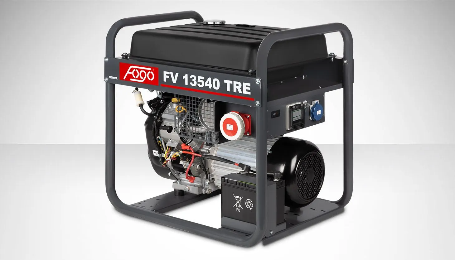 Agregat prądotwórczy 3-fazowy FOGO FV13540TRE (IP54) — moc 12,5/11,3 kVA, silnik VANGUARD 18 HP, zbiornik 45 l, masa 143 kg. Trójfazowy 400 V do urządzeń przemysłowych.