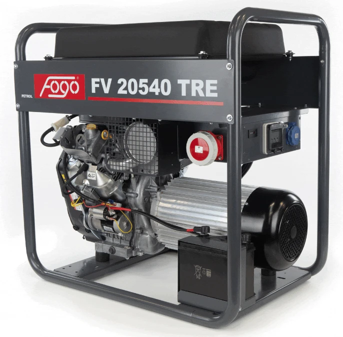 Agregat prądotwórczy 3-fazowy FOGO FV20540TRE (IP54) — moc 19,5/17,5 kVA, silnik VANGUARD 31 HP, zbiornik 45 l, masa 184 kg. Trójfazowy 400 V do urządzeń przemysłowych.