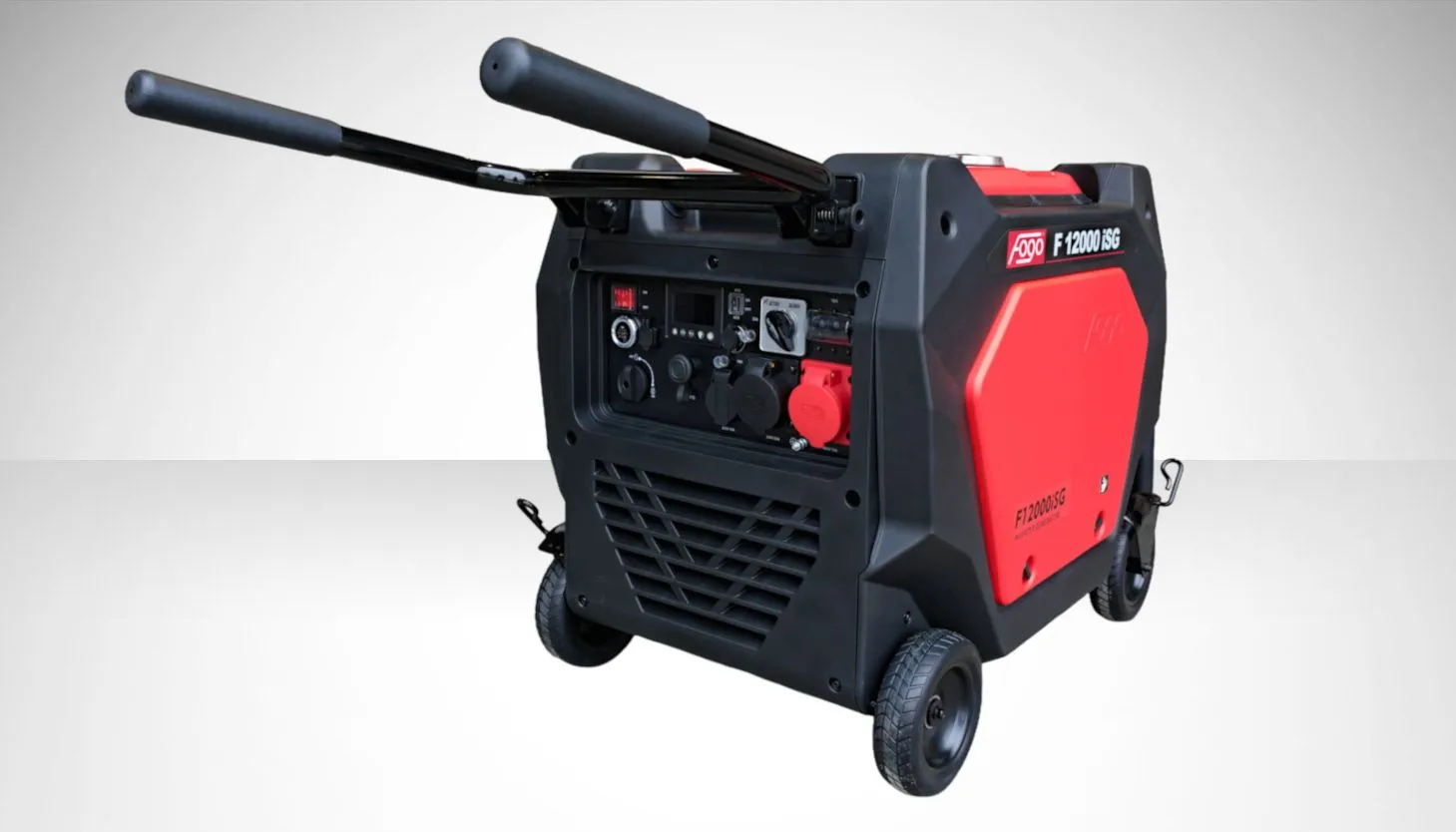 Agregat prądotwórczy inwerterowy FOGO F12000iSG DUALFUEL na gaz — moc 11,8/11,1 kVA → 9,5 kW (1f), silnik RATO R500DN-Vi, zbiornik 33,0 l, masa 105 kg. Czysty prąd sinusoidalny dla wrażliwej elektroniki.