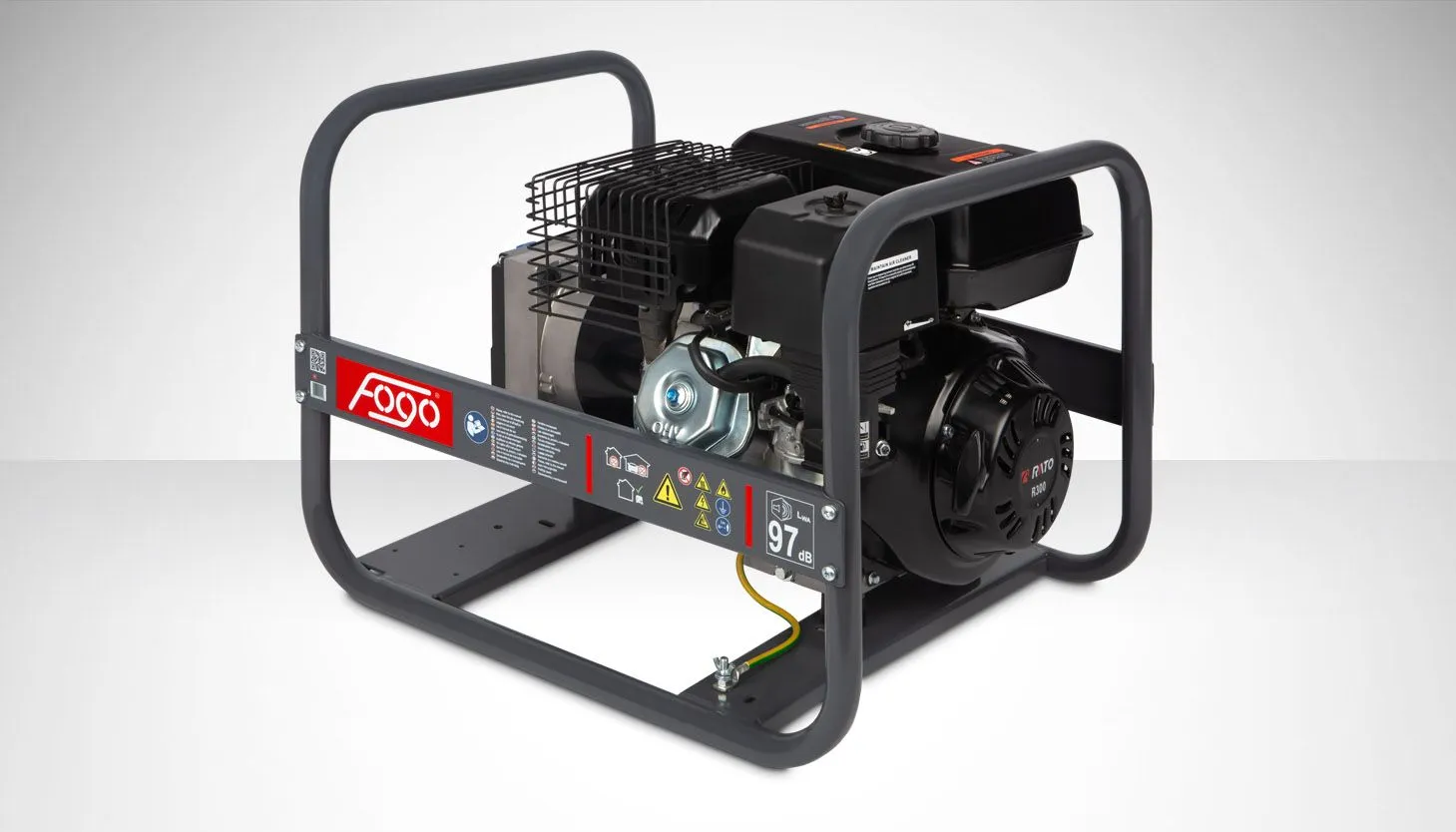Agregat FOGO F5001 z silnikiem RATO R300 to niezawodne źródło prądu 230 V do zasilania narzędzi elektrycznych, oświetlenia placu budowy oraz urządzeń gospodarstwa domowego. Spalanie RATO jest niskie, a kompaktowe wymiary i masa 53 kg ułatwiają transport.