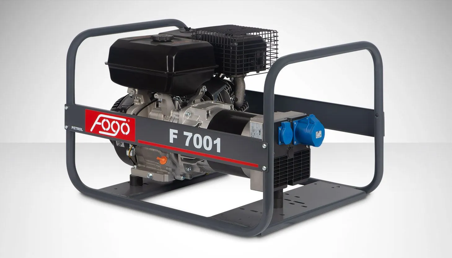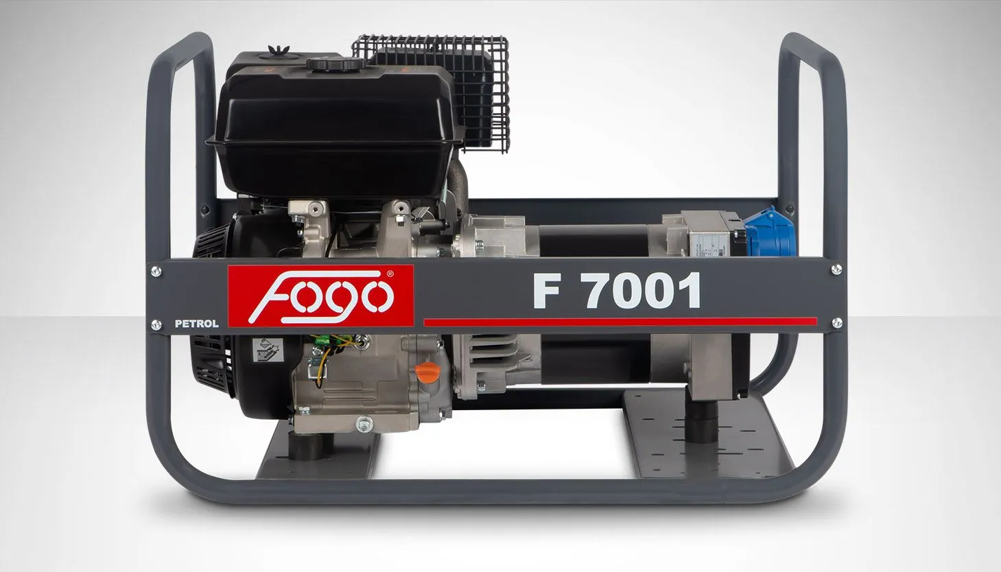 Agregat prądotwórczy jednofazowy FOGO F7001 — moc 6,2 / 5,6 kW, silnik RATO R420, zbiornik 6,5 l, masa 69 kg. Jednofazowy 230 V do narzędzi budowlanych i AGD.