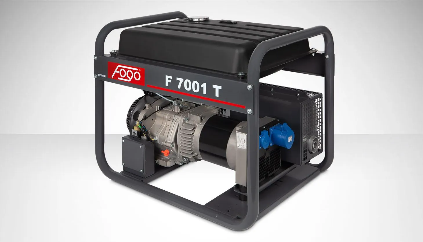 Agregat prądotwórczy jednofazowy FOGO F7001T — moc 6,2 / 5,6 kW, silnik RATO R420G, zbiornik 45 l, masa 87 kg. Jednofazowy 230 V do narzędzi budowlanych i AGD.