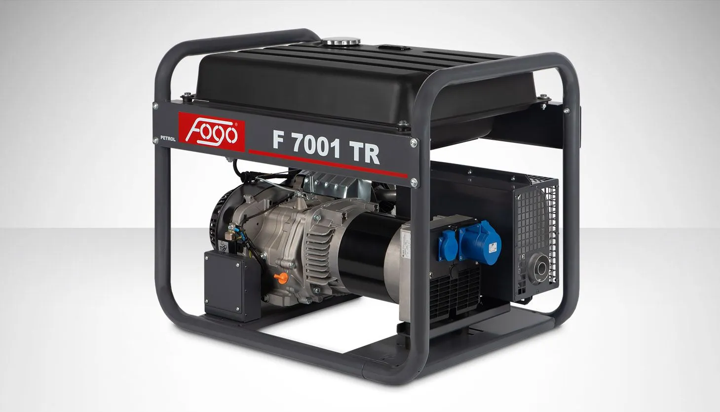 Agregat prądotwórczy jednofazowy FOGO F7001TR — moc 6,2 / 5,6 kW, silnik RATO R420G, zbiornik 45 l, masa 85 kg. Jednofazowy 230 V do narzędzi budowlanych i AGD.