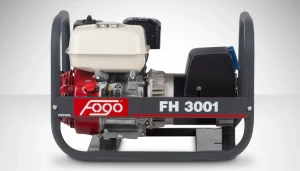 Agregat prądotwórczy jednofazowy FOGO FH3001 — moc 3,0 / 2,7 kW, silnik HONDA GX 200, zbiornik 3,1 l, masa 37 kg. Jednofazowy 230 V do narzędzi budowlanych i AGD.