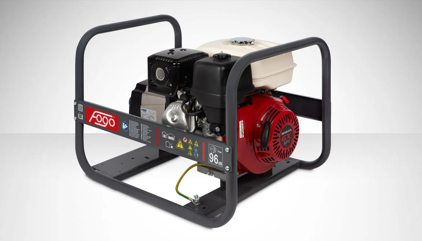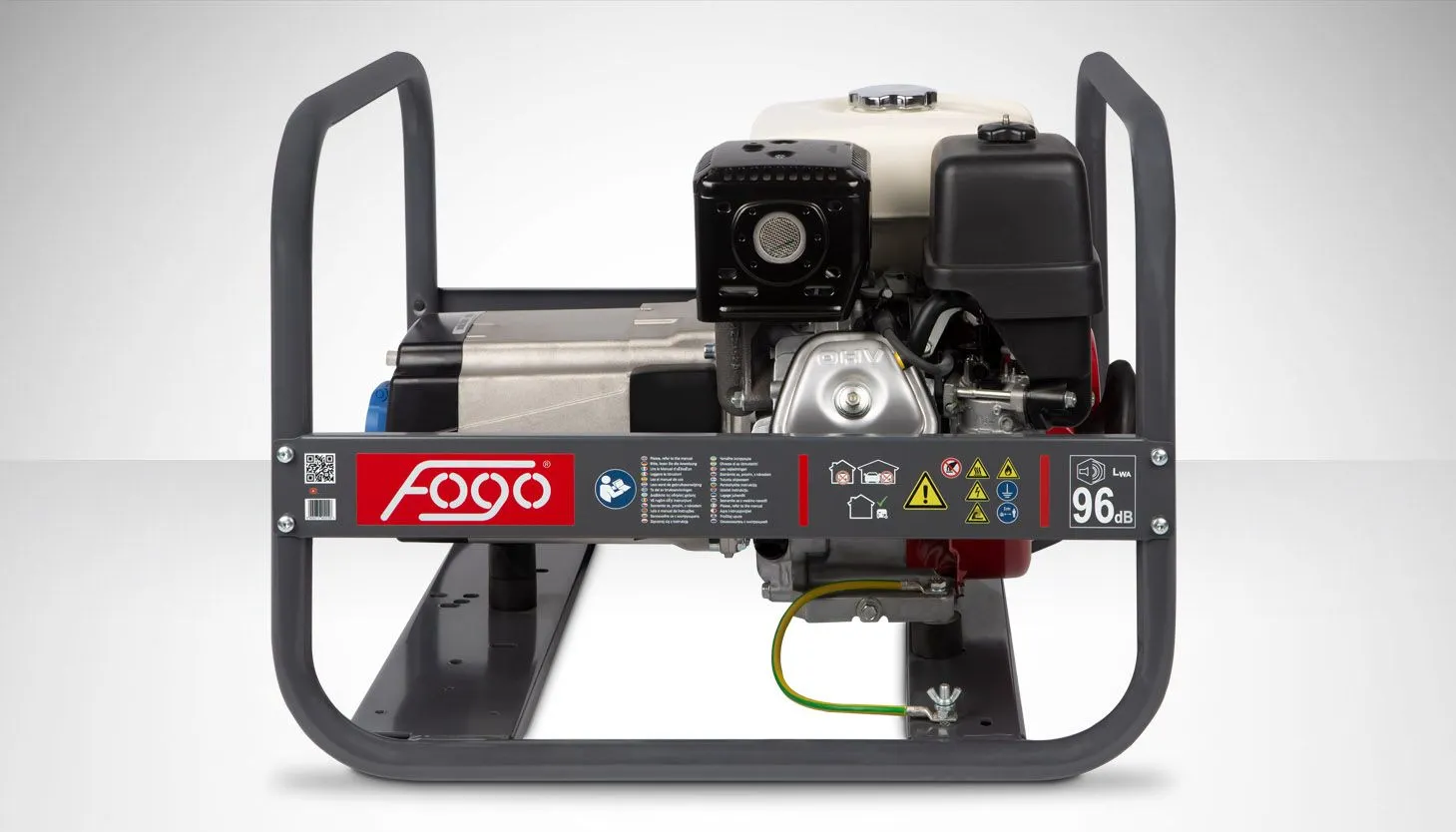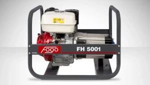 Agregat prądotwórczy jednofazowy FOGO FH5001 — moc 4,2 / 3,8 kW, silnik HONDA GX 270, zbiornik 5,3 l, masa 53 kg. Jednofazowy 230 V do narzędzi budowlanych i AGD.