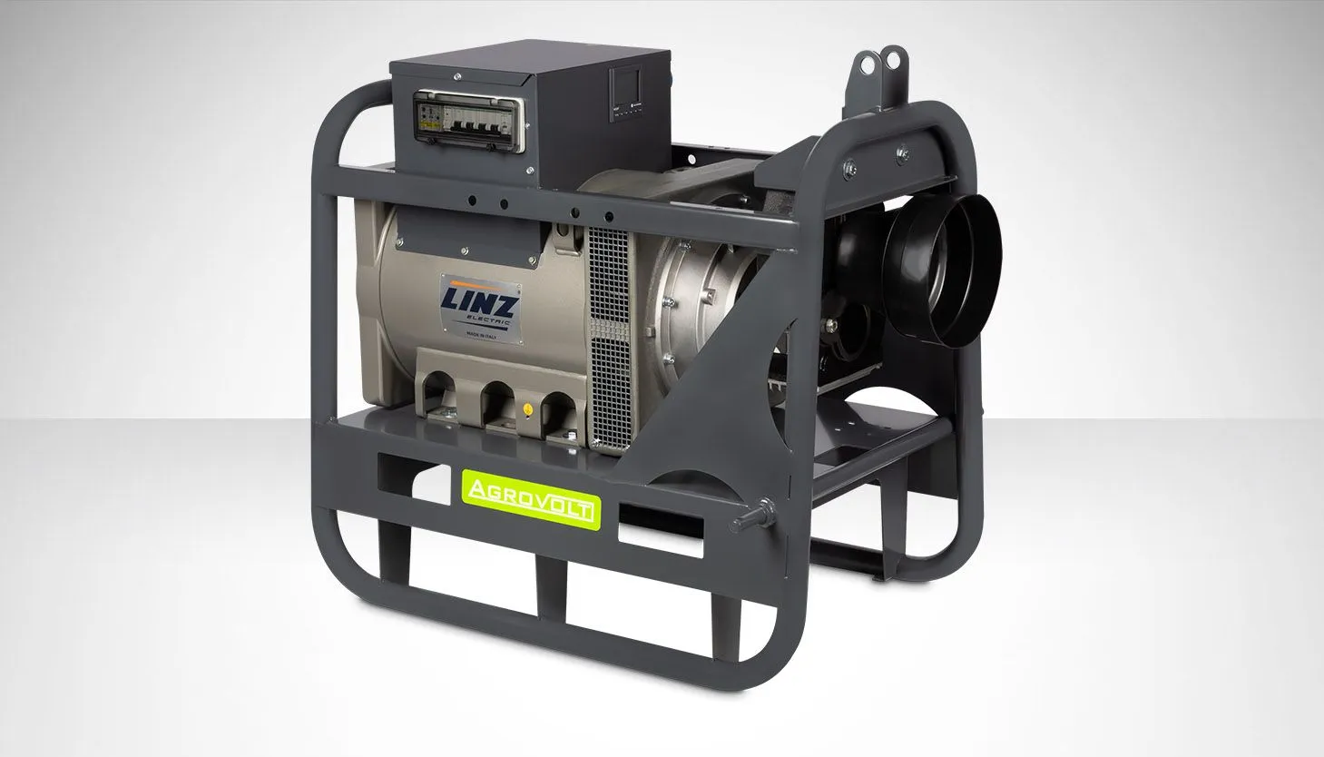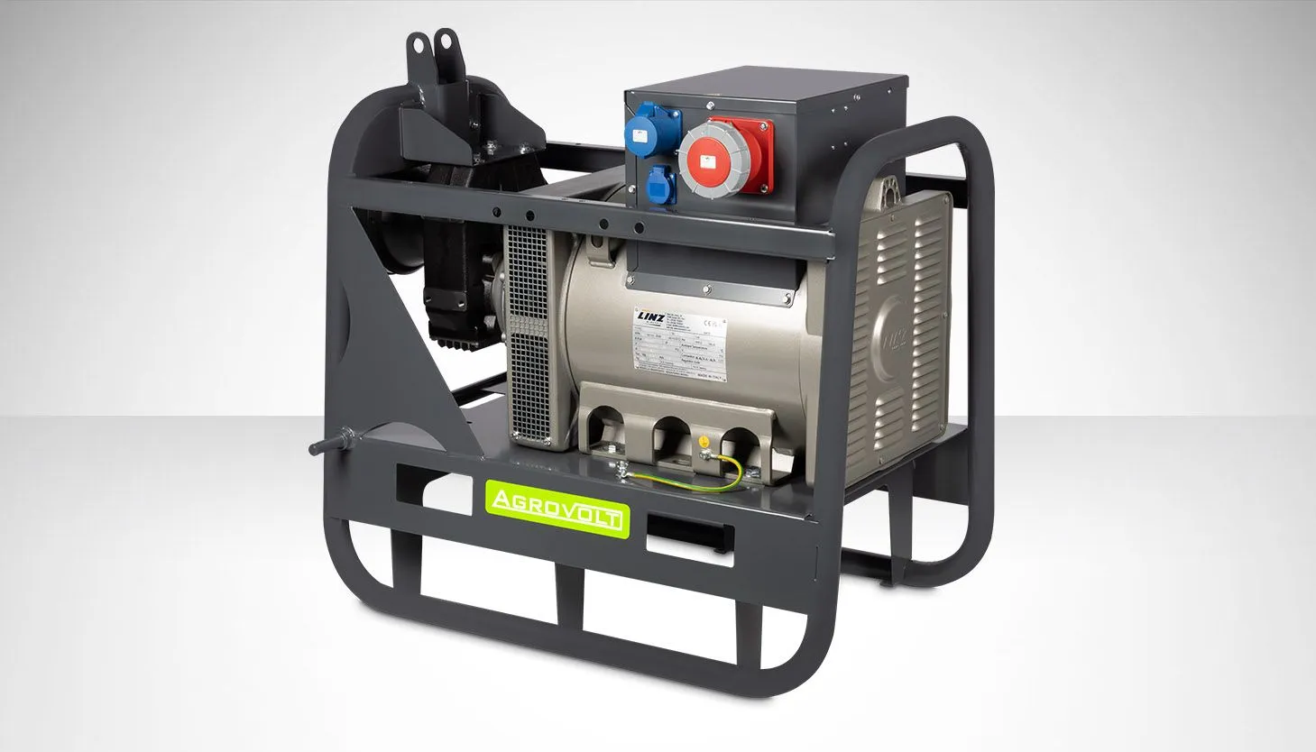 Agregat prądotwórczy na WOM FOGO Agrovolt AV80R — moc 80 kVA / 64,0 kW, silnik WOM 200 KM, zbiornik -, masa ?. Napęd z WOM ciągnika — niski koszt eksploatacji.