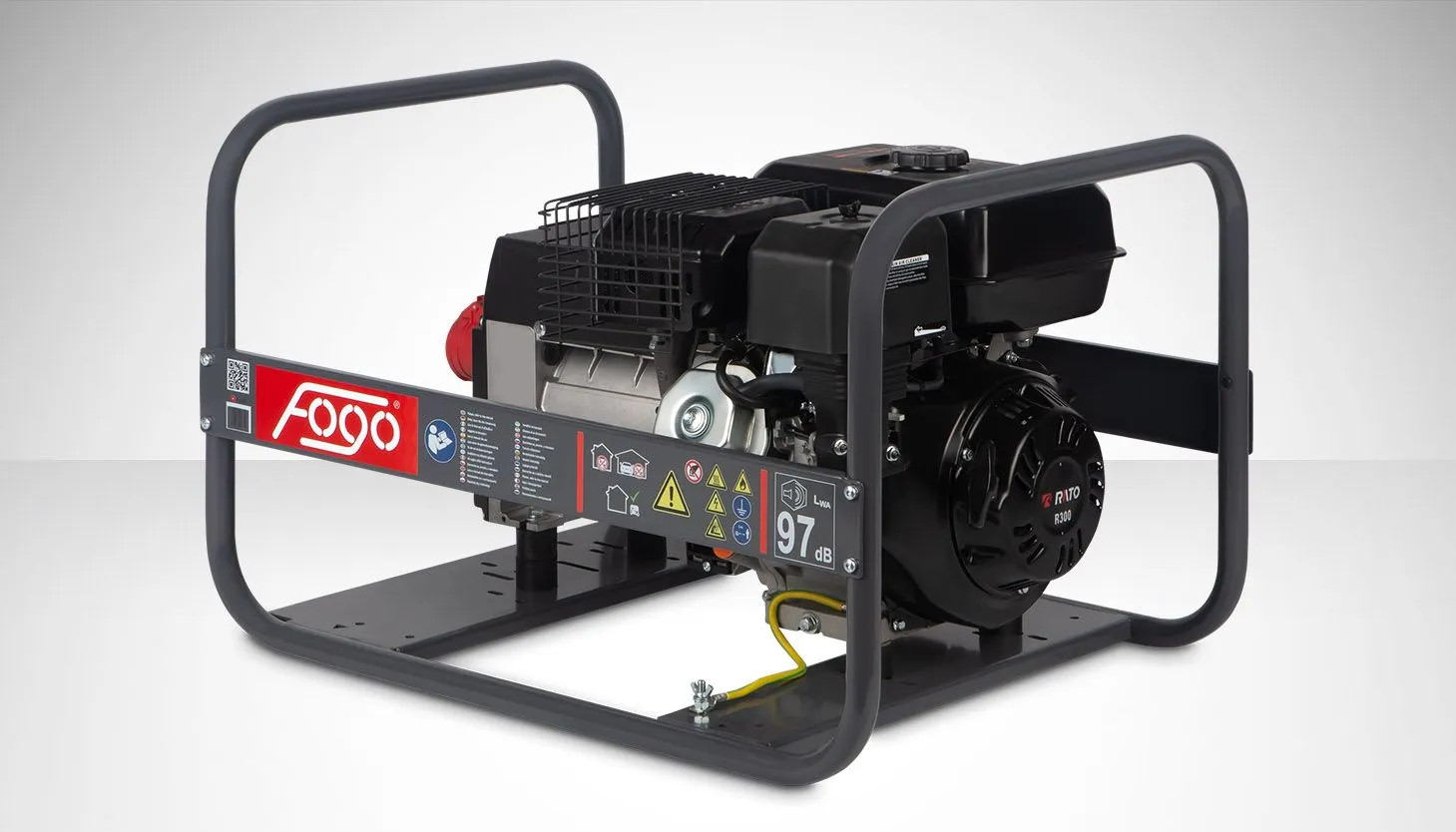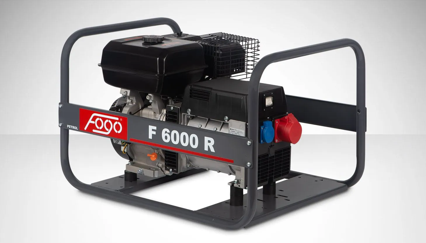 Agregat prądotwórczy trójfazowy FOGO F6000R — moc 5,5/5,0 kVA, silnik RATO R300, zbiornik 5,4 l, masa 60 kg. Trójfazowy 400 V do urządzeń przemysłowych.