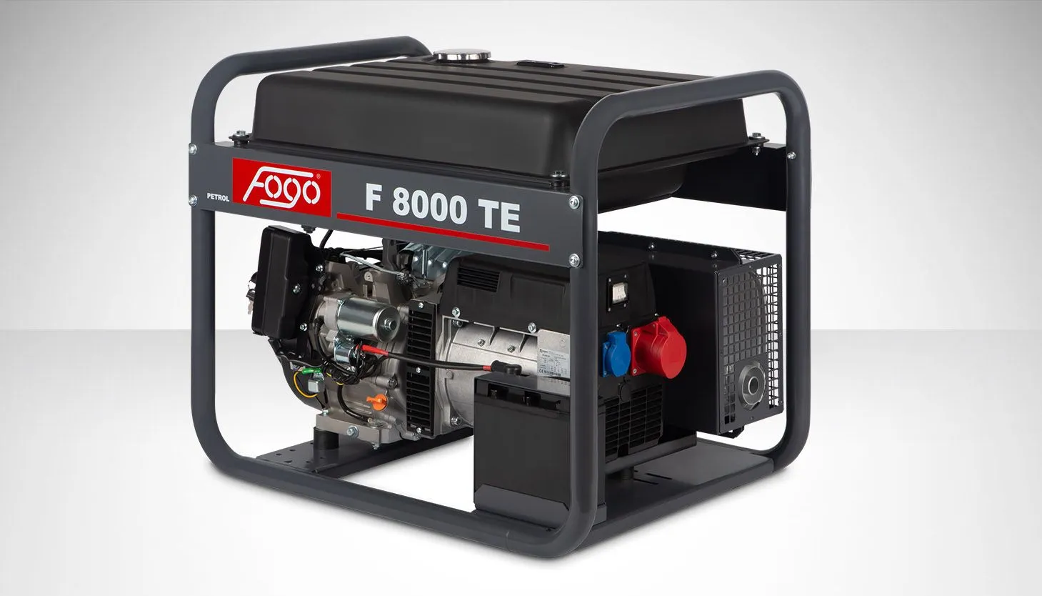 Agregat prądotwórczy trójfazowy FOGO F8000TE — moc 7,7/7,0 kVA, silnik RATO R420DG, zbiornik 45 l, masa 102 kg. Trójfazowy 400 V do urządzeń przemysłowych.