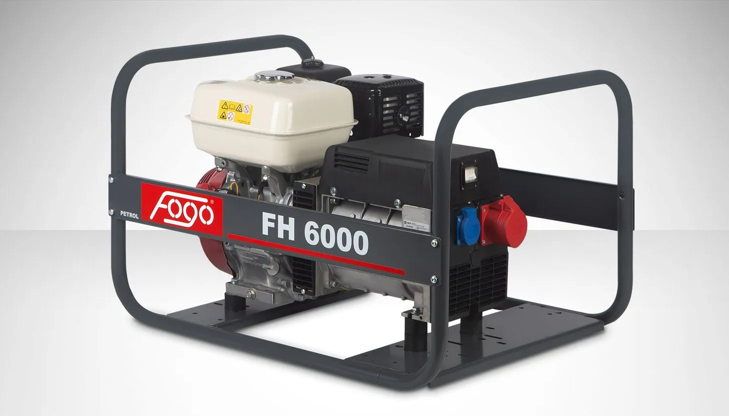 Agregat prądotwórczy trójfazowy FOGO FH6000 — moc 5,5/5,0 kVA, silnik HONDA GX 270, zbiornik 5,3 l, masa 68 kg. Trójfazowy 400 V do urządzeń przemysłowych.