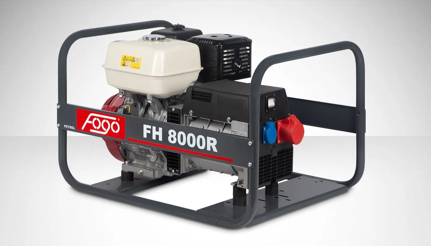 Agregat prądotwórczy trójfazowy FOGO FH8000R — moc 7,7/7,0 kVA, silnik HONDA GX 390, zbiornik 6,1 l, masa 70 kg. Trójfazowy 400 V do urządzeń przemysłowych.