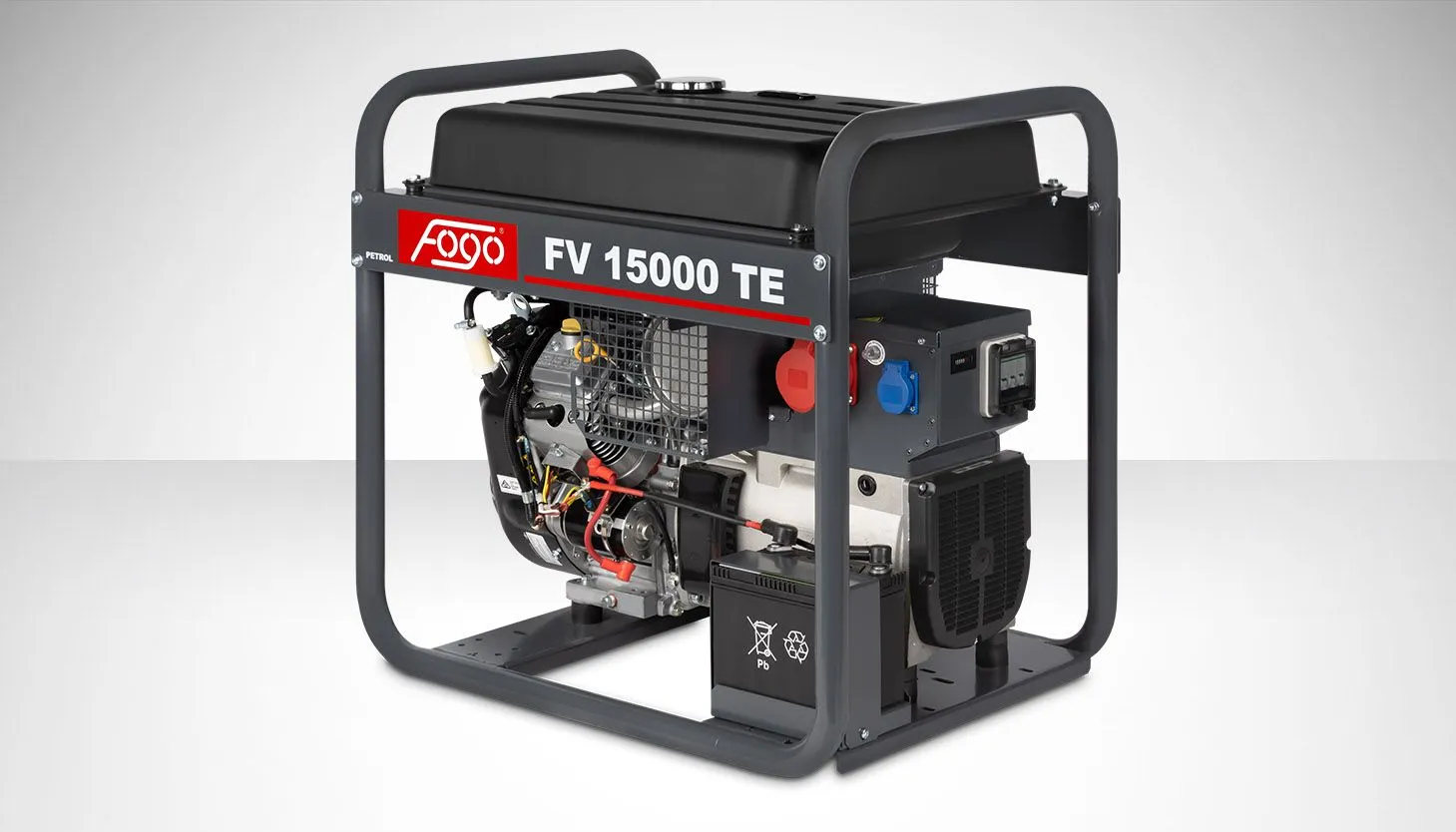 Agregat prądotwórczy trójfazowy FOGO FV15000TE — moc 14,5/12,5 kVA, silnik VANGUARD 21 HP, zbiornik 45 l, masa 135 kg. Trójfazowy 400 V do urządzeń przemysłowych.