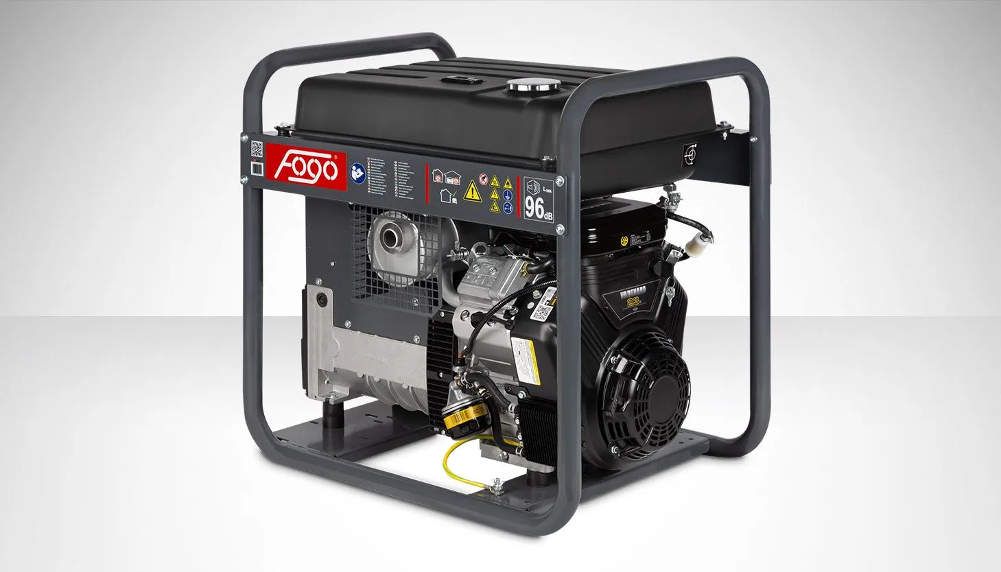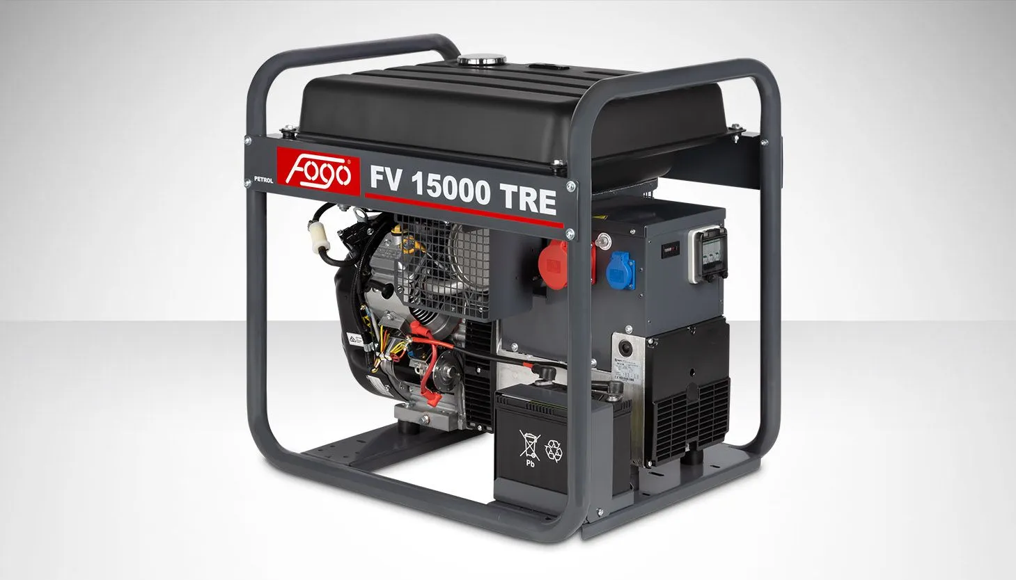 Agregat prądotwórczy trójfazowy FOGO FV15000TRE — moc 14,5/12,5 kVA, silnik VANGUARD 21 HP, zbiornik 45 l, masa 130 kg. Trójfazowy 400 V do urządzeń przemysłowych.