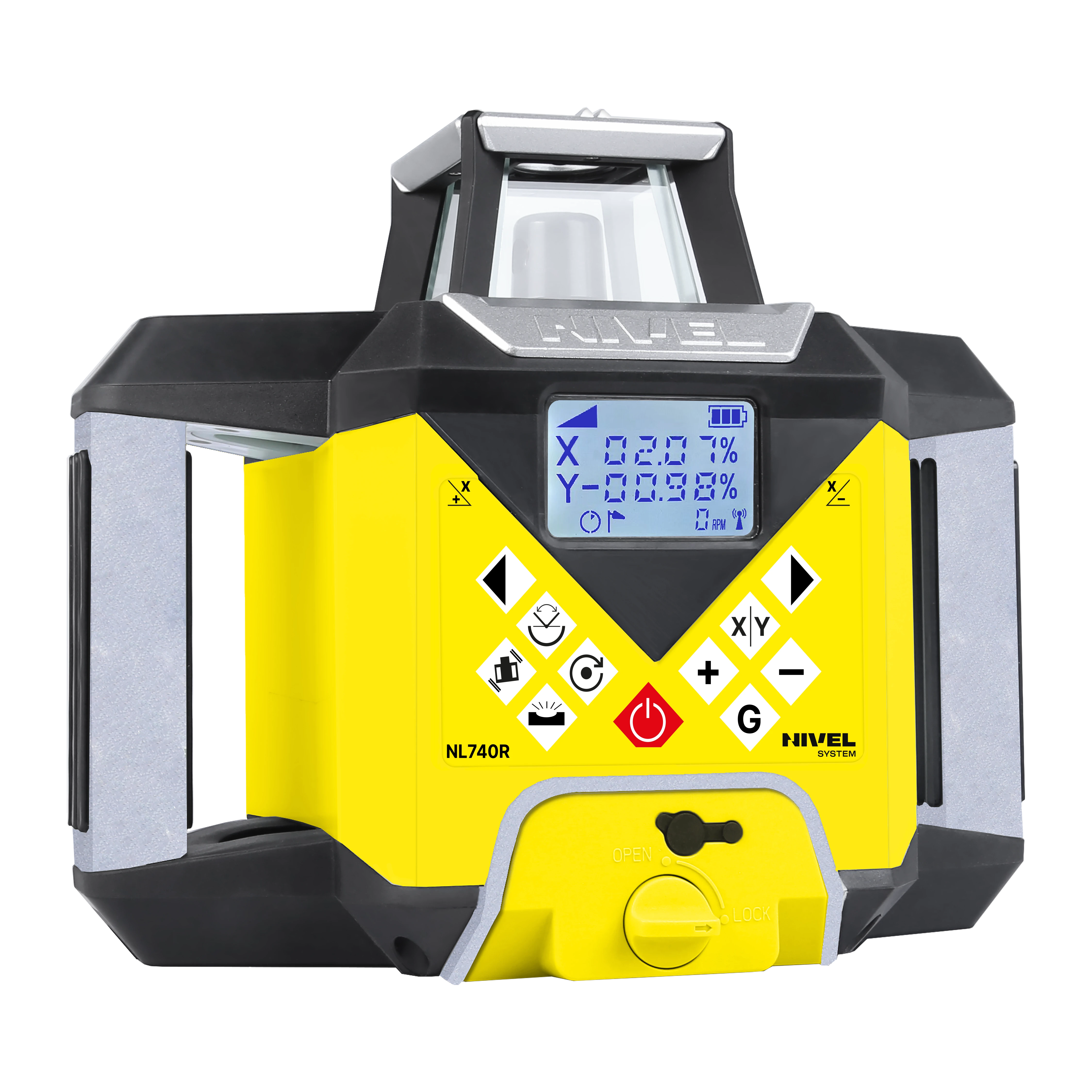 Nivel System NL740R DIGITAL – Niwelator z cyfrowymi spadkami i autowpasowaniem — Niwelator laserowy NL740R Nivel System z czerwona wiązka (635 nm) – profesjonalny laser rotacyjny do niwelacji na otwartych przestrzeniach i wewnątrz budynków.