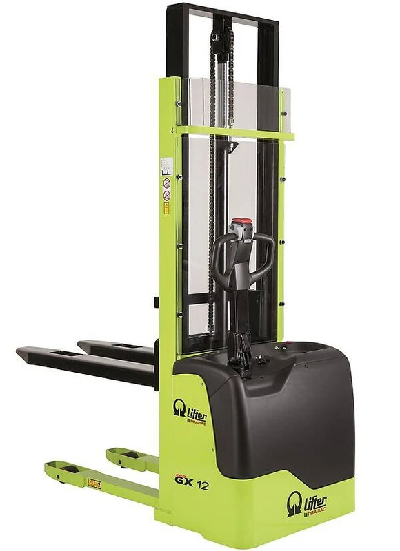 Pramac GX 12 EVO Li-Ion — elektryczna układarka 1200 kg TOP LINE — w pełni elektryczna (jazda + unoszenie), silnik DC, bateria Li-Ion 24V 80Ah w zestawie. Szybkie ładowanie, bez konserwacji, najdłuższy czas pracy. 5 wariantów — wybierz wariant w sekcji wyboru na górze strony.