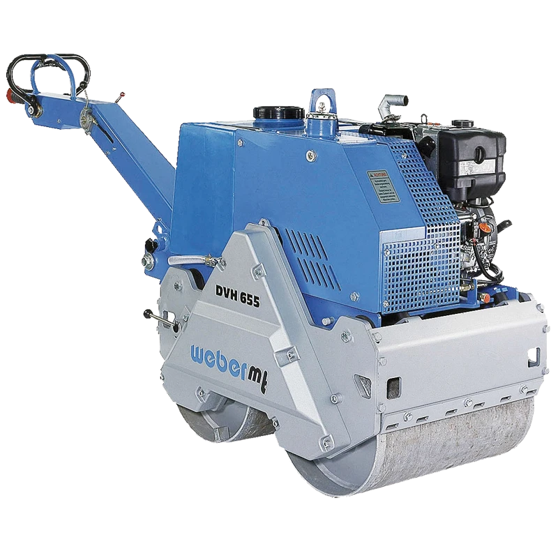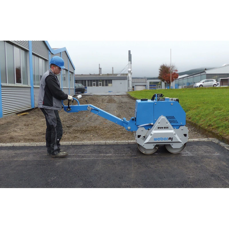 Walec prowadzony WEBER DVH 655 e to walec prowadzony dwubębnowy klasy 460 kg z silnikiem Honda GX390. Siła wymuszająca 15 kN, szerokość zagęszczania 650 mm. Dla firm drogowych wykonujących prace brukarskie i asfaltowe.